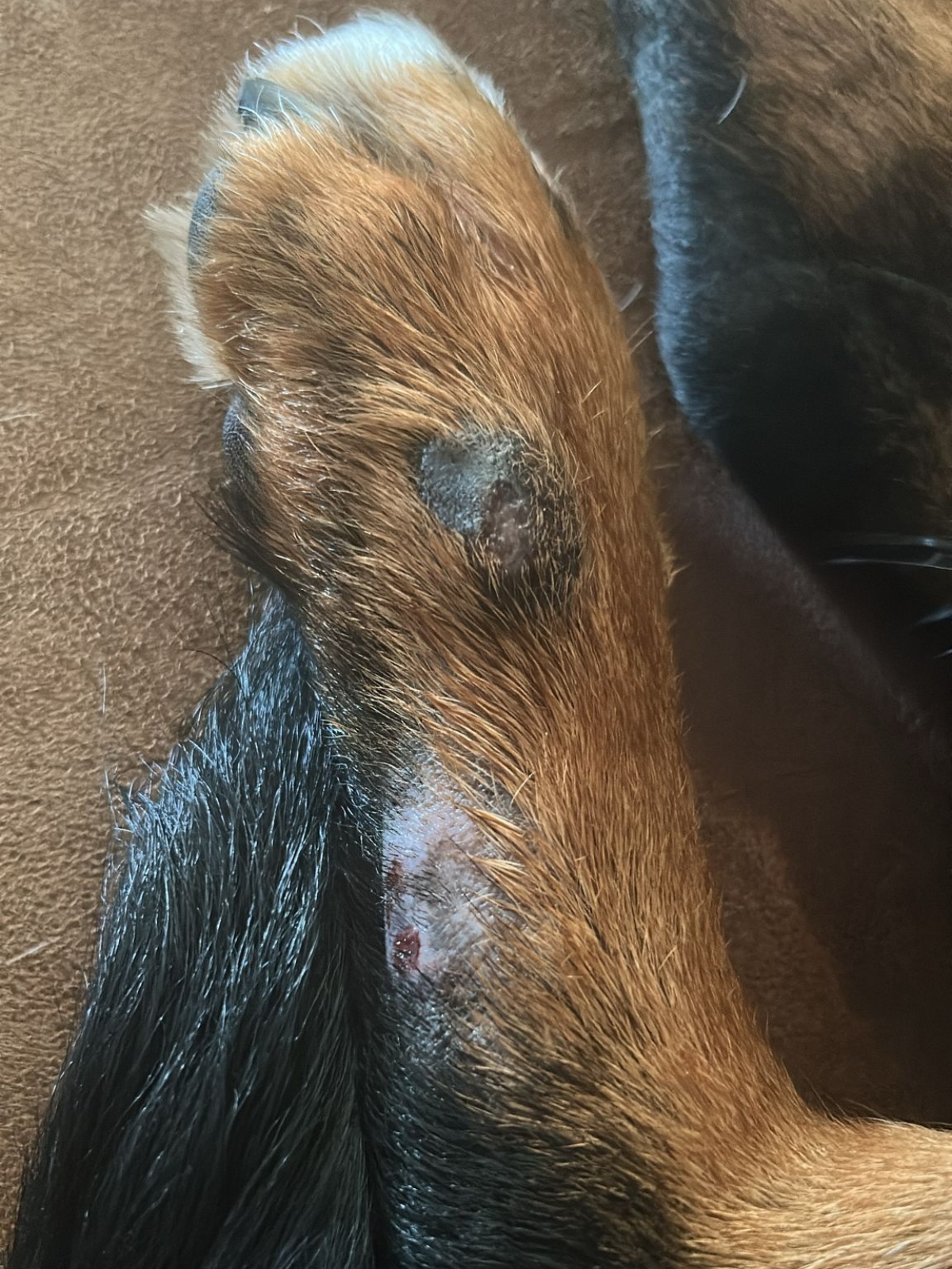 Ich möchte dir mitteilen, dass es unserer Fanny viel besser geht. Ab und zu hat sie noch die Tendenz, an ihrem Bein zu beißen, aber ich bin schnell dabei, ihr zu sagen, dass sie das nicht tun darf.